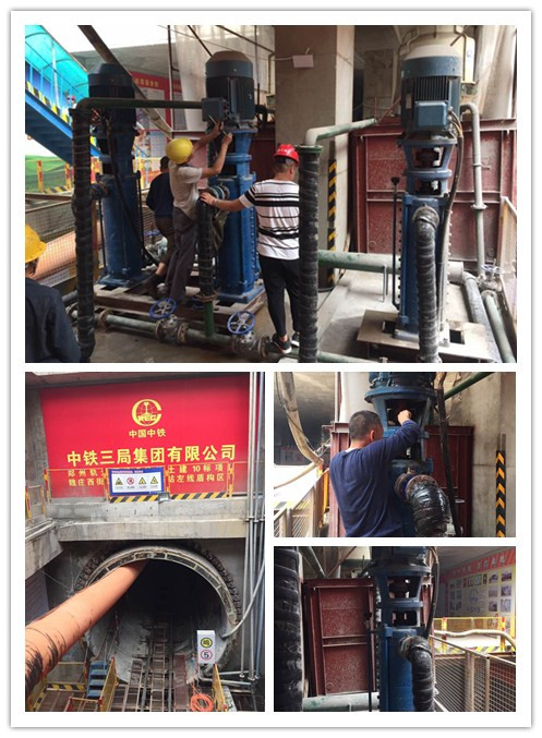 鄭州市軌道交通五號線建設項目,自2016年8月3日,采購我司立式多級泵組型號80DL54-20*10,數(shù)量3套,水泵流量54立方/小時,揚程200米,配套功率55KW,擔負盾構機主供水設備。